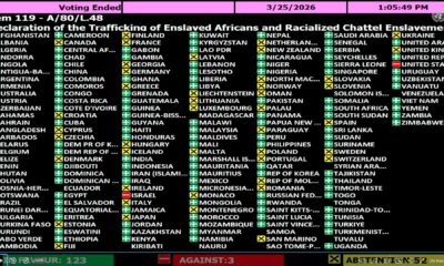 The United Nations General Assembly has adopted a landmark resolution unequivocally condemning the trafficking of enslaved Africans and the transatlantic slave trade as the most inhumane...